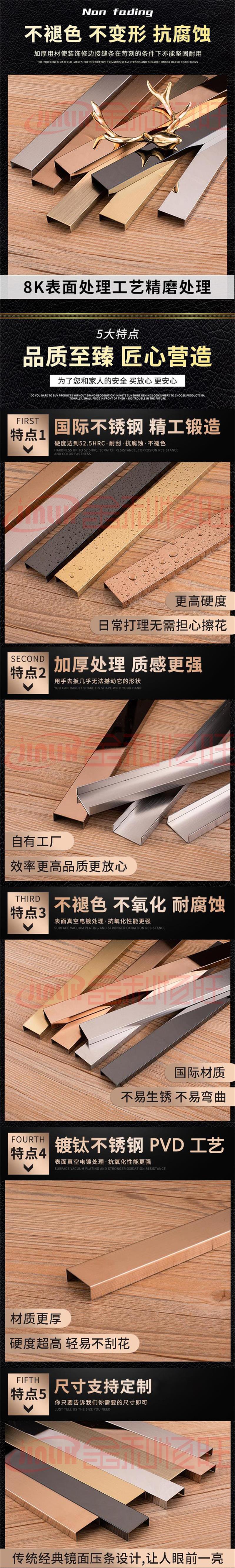 顏色:白拉絲,黑鈦,灰鈦,鈦金,玫瑰金,香檳金,古銅色等。