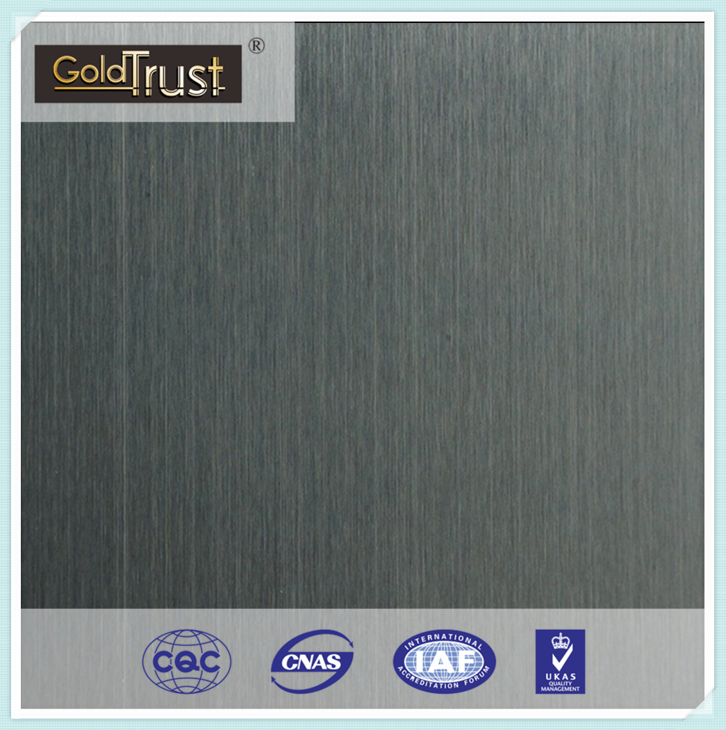 黑鈦不銹鋼板又名黑色不銹鋼板。它的表面有鏡面黑鈦板、黑鈦拉絲板等等。材質(zhì)有201、304、316等,常規(guī)尺寸為1220mm*2400mm、1000mm*2000mm、860mm*610mm、1220mm*3050mm等等,厚度在0.28mm~5mm。黑鈦不銹鋼板可真空鍍可水鍍,水鍍顏色比真空鍍顏色更鮮艷,缺點(diǎn)是304材質(zhì)鍍出來偏藍(lán)。