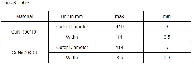 所列產品為除管材外可使用CuNi生產的產品: