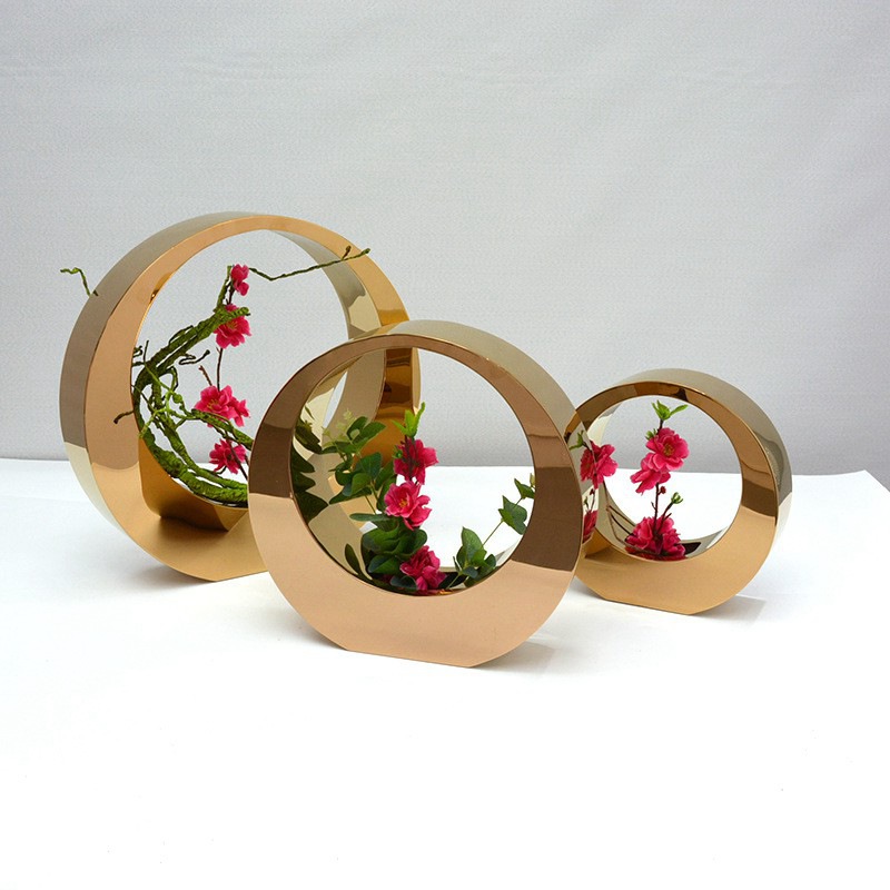 這款不銹鋼花器造型是弧形的立體造型,可手提起來,方便移動。可以把花放在花器中間,點綴居家環境。廠家采用的是激光切割和焊接工藝,制作流程大概是這樣的:先將不銹鋼板激光切割下料,然后再將他們拼接焊接起來,最后再打磨拋光。如果需要鍍金色的話,還需要進行鍍鈦加工。