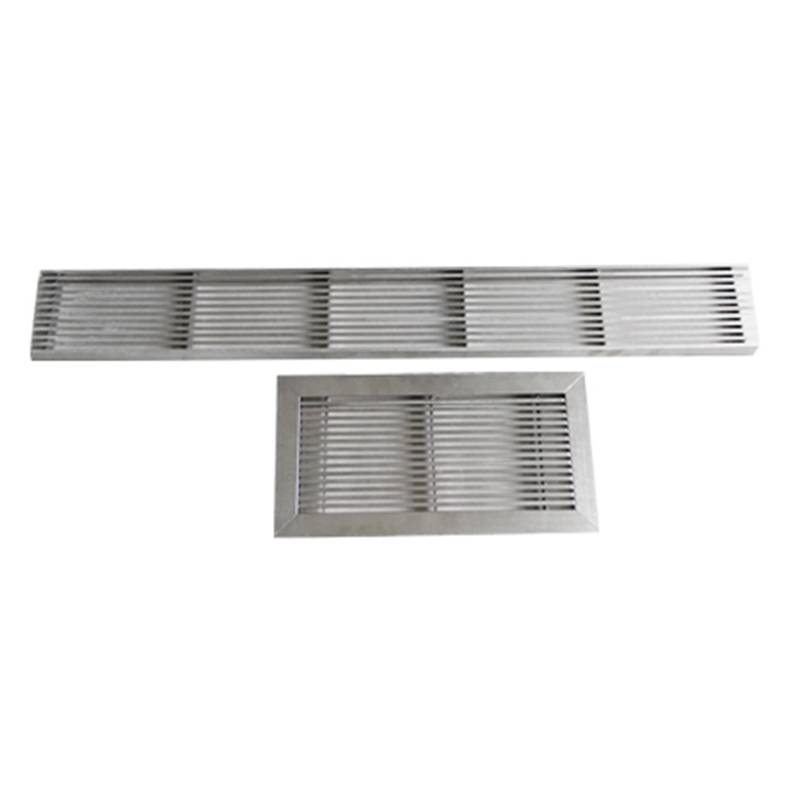 1、不銹鋼長條縫風口,風口由固定葉片組成,葉片沿平行于長邊排列,每節(jié)最大連續(xù)長度可做成3m,也可把兩節(jié)或多節(jié)拼起來使用,拼縫處采用插接板連接。該風口氣流流型屬于平面射流,可用于室內(nèi)送、回風口。送風時,風口上方需設靜壓箱,以確保垂直下送氣流分布均勻。