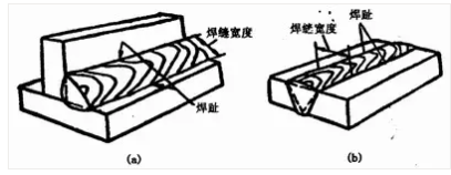 焊縫表面與母材的交界處叫焊趾。焊縫表面兩焊趾之間的距離叫焊縫寬度,如圖1—17。