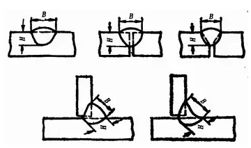 熔焊時,在單道焊縫橫截面上焊縫寬度(B)與焊縫計算厚度(H)的比值(ф=B/H),叫焊縫成形系數(shù),見圖1—21。該系數(shù)值小,則表示焊縫窄而深,這樣的焊縫中容易產(chǎn)生氣孔和裂紋,所以焊縫成形系數(shù)應(yīng)該保持一定的數(shù)值,例如埋弧自動焊的焊縫成形系數(shù)ф要大于1.3。