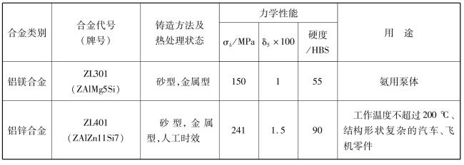 表1.5.12 幾種常用鑄造鋁合金的牌號、力學(xué)性能及用途